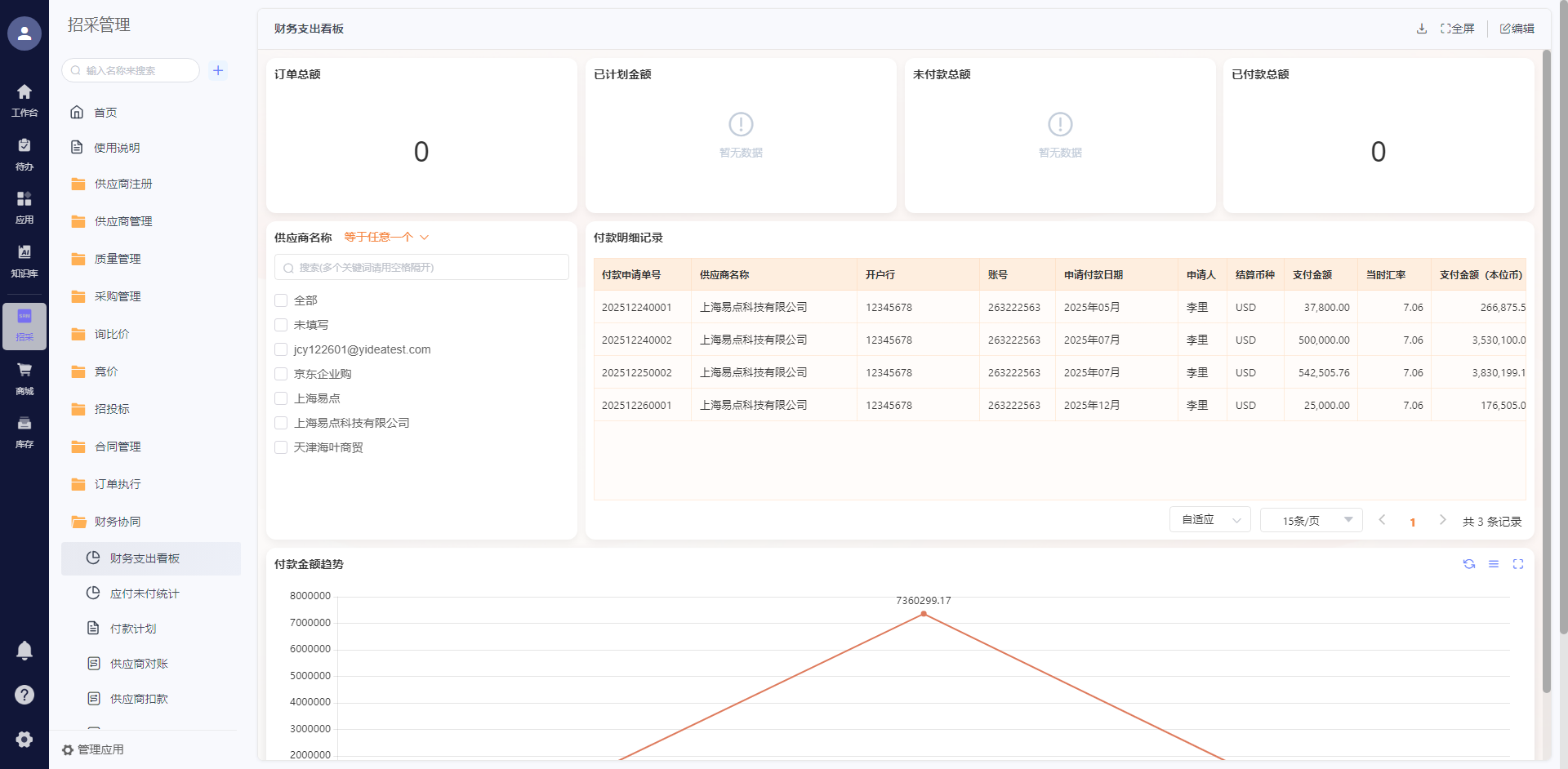 - 风险管控能力增强:供应商准入通过第三方征信与实名认证,风险识别率提升 90%;资质到期自动提醒、绩效评估闭环管理,有效降低供应商合作风险;资金计划与付款申请挂钩,预算执行合规率提升 100%。