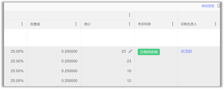 - 数据化绩效评估:制定多维度考核标准,涵盖质量、交期、价格、服务等核心指标,针对不同供应商定制专属考评模板,支持模板复用与关联考评。考核流程由多部门协同参与打分,系统自动汇总考核结果,生成供应商绩效分数与等级,数据驱动供应商优胜劣汰,推动合作质量持续提升。