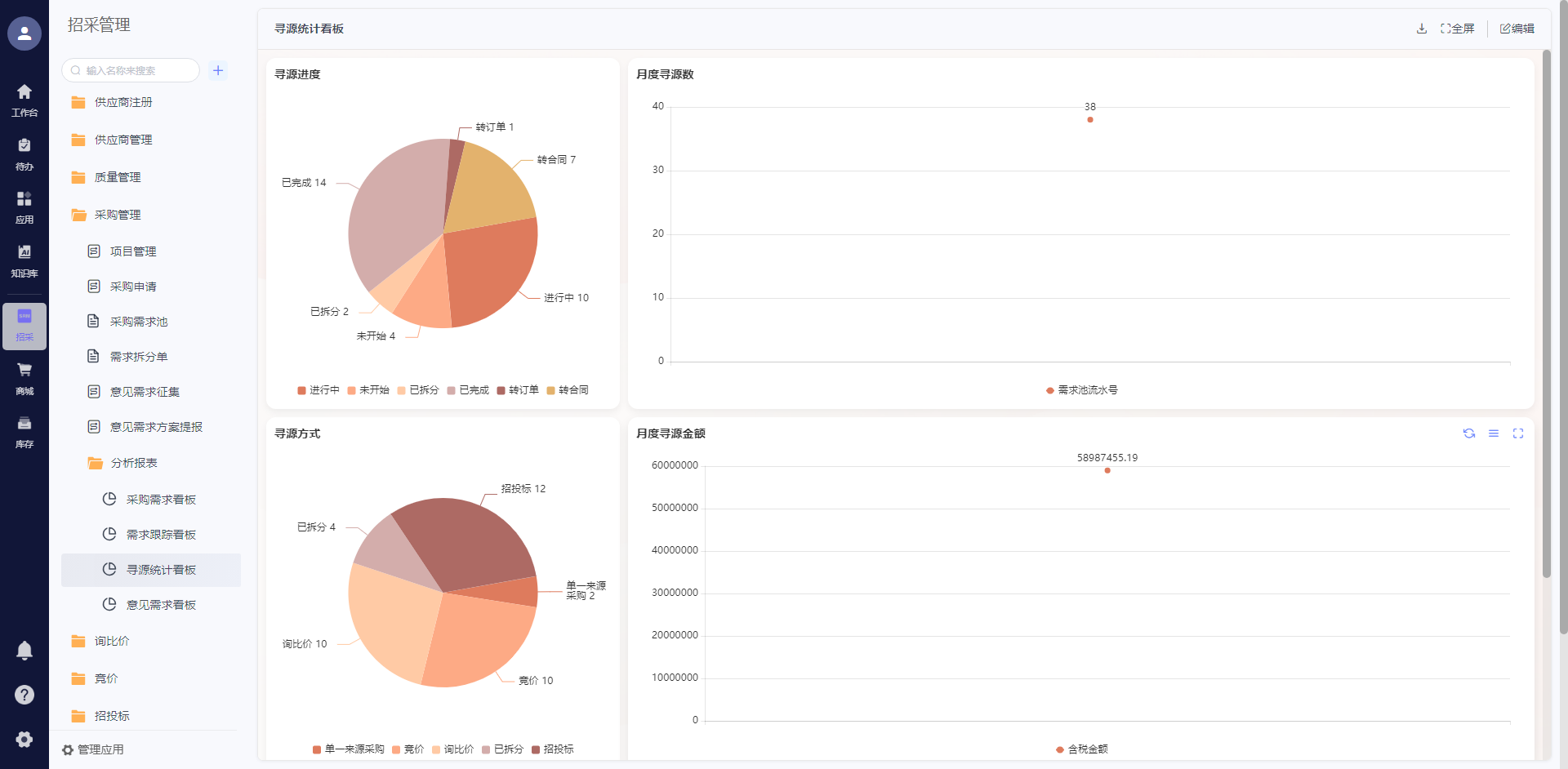 采购管理解决方案,涵盖供应商管理、采购执行、合同管理、协同套件、仓储管理、资金计划等核心模块,实现采购业务的规范化、协同化、智能化管理。