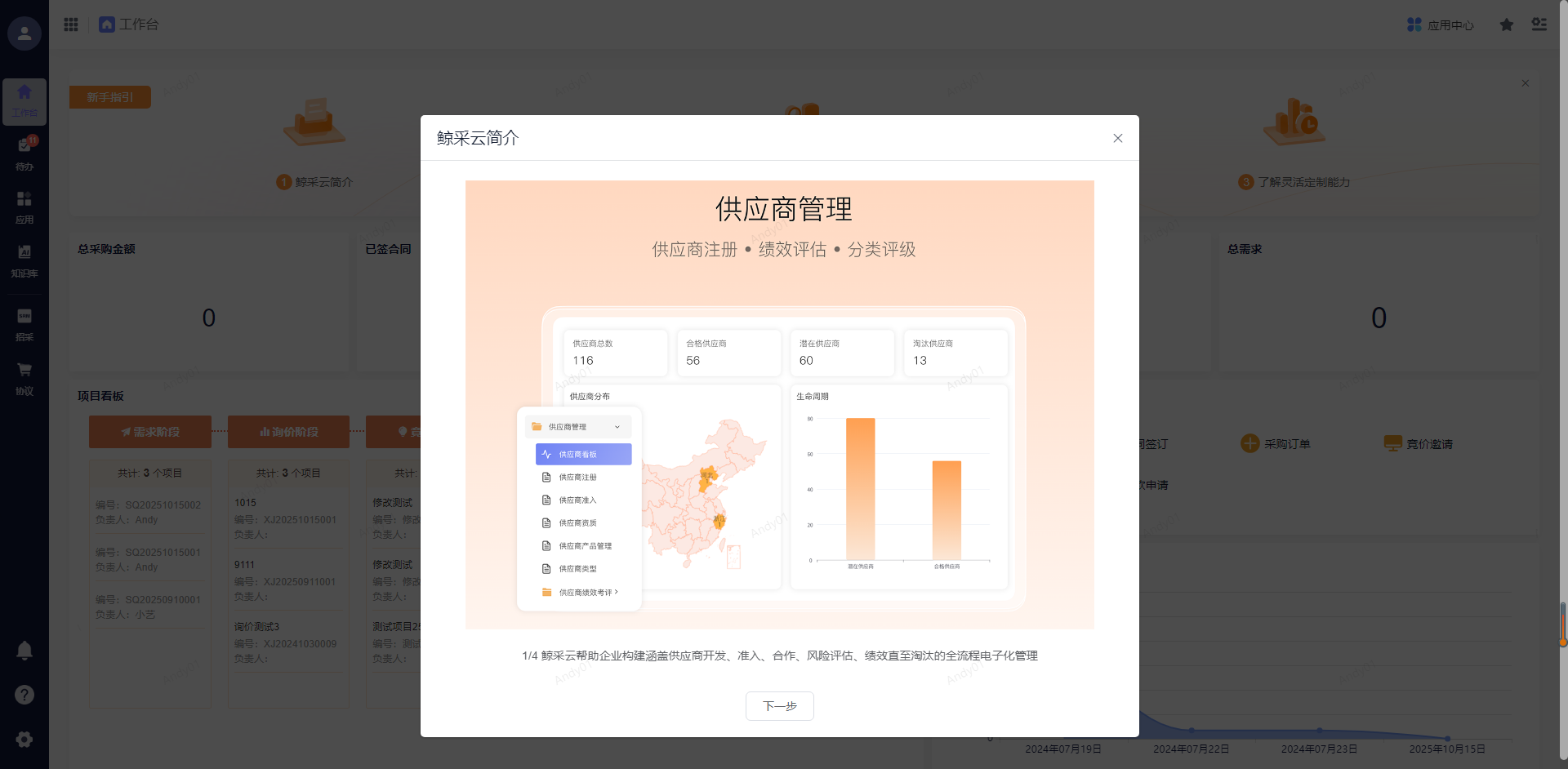 好的采购管理系统,从来不是“花架子”,每个功能都得能解决实际麻烦。鲸采云就是这样,核心功能全踩在采购的“痛点上”: