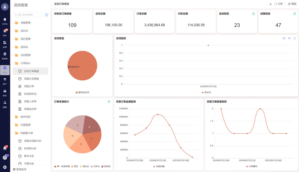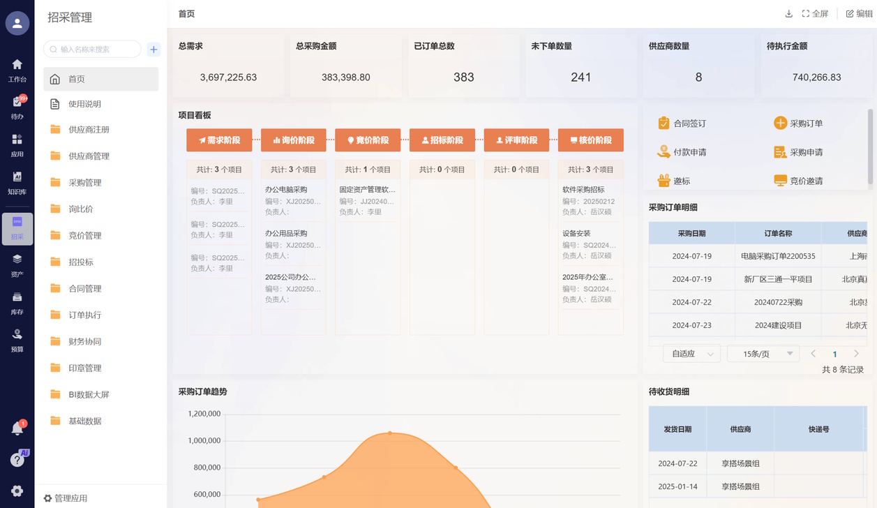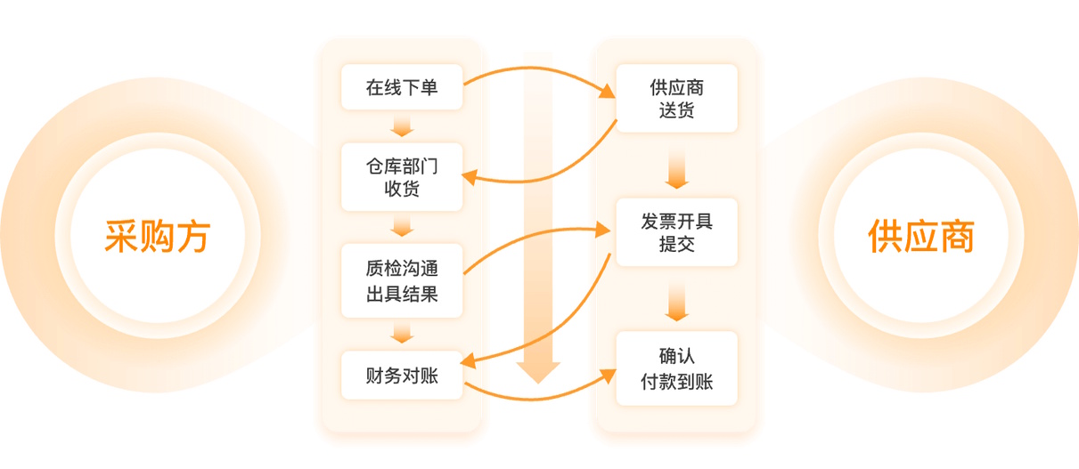 - 下单全程电子化:订单直接发供应商平台,对方确认、发货、传单据都在线上完成;