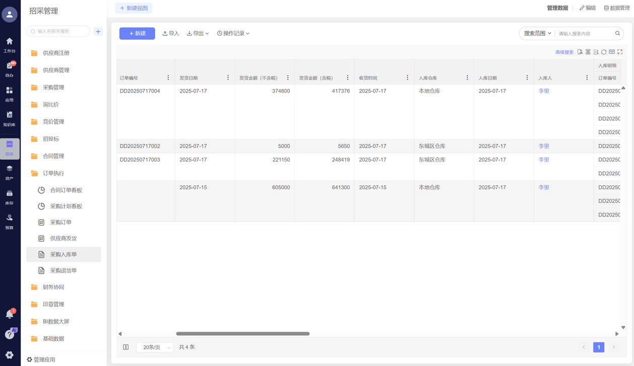 - 入库有单可查:采购到货或退料返修,系统自动生成入库任务,仓库扫码上架,流程闭环,全程可追溯;