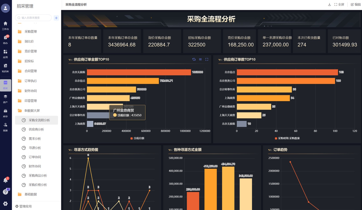 - 流程顺畅:从申请、审核、下单、验收到付款,整个流程都要畅通无阻;