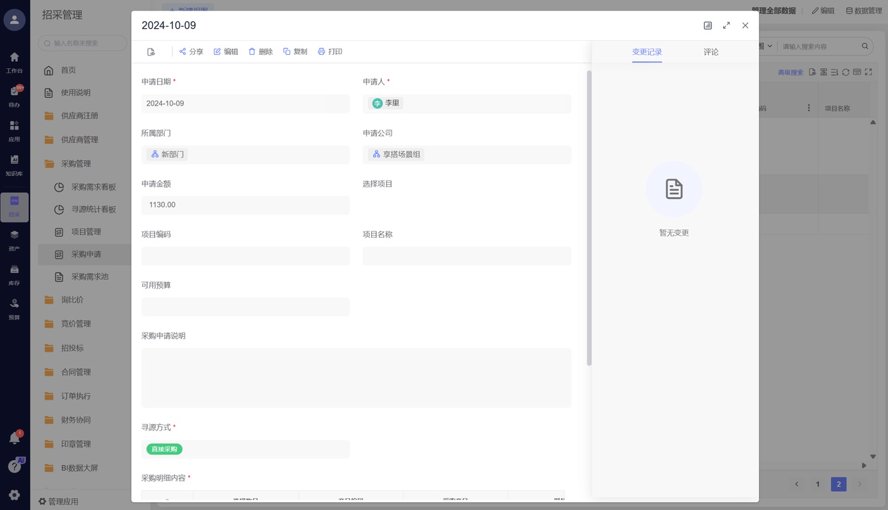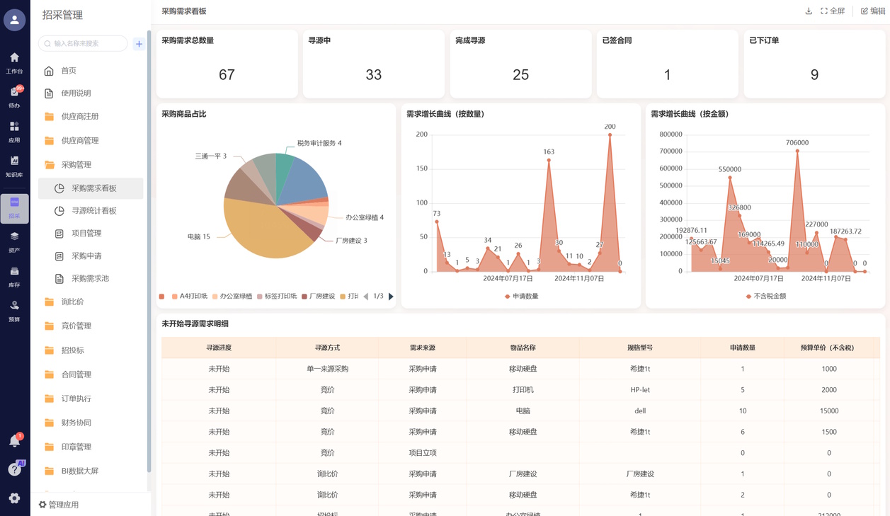 - 自动发起采购申请:库存快没了,或生产要开工,系统自动算好缺啥,直接生成采购申请;